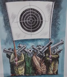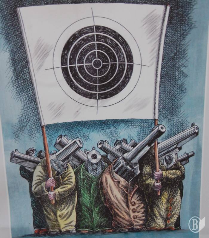 Виставлено 100 робіт 9-ти відомих карикатуристів, що визнані у всьому світі. Проте в Україні про них мало не відомо.