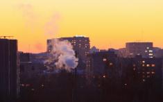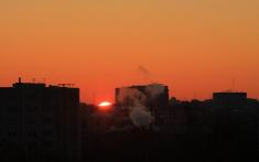 Зимовий захід над містом. ФОТО