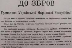 Завершает выставку раздел, где представлены документы Государственного архива Черниговской области о событиях Украинской революции 1917-1918 годов.