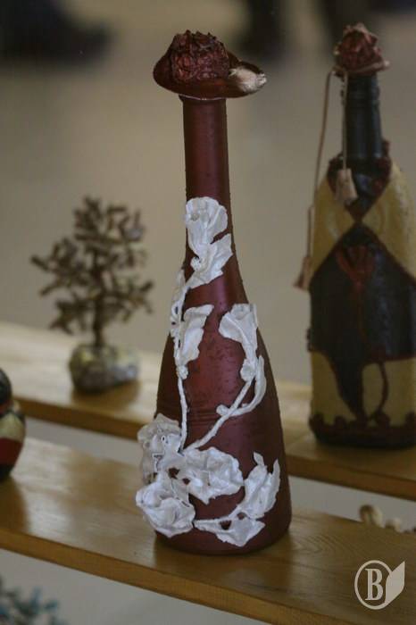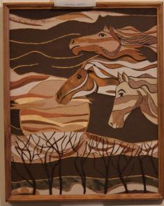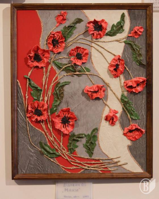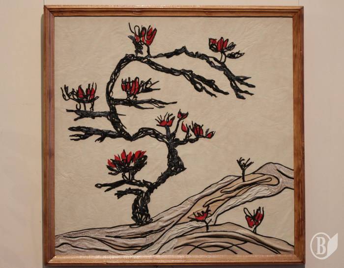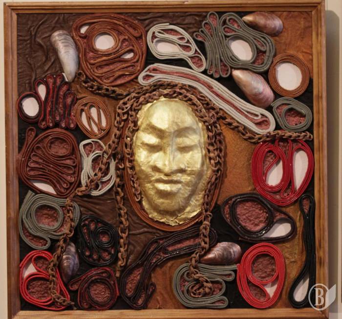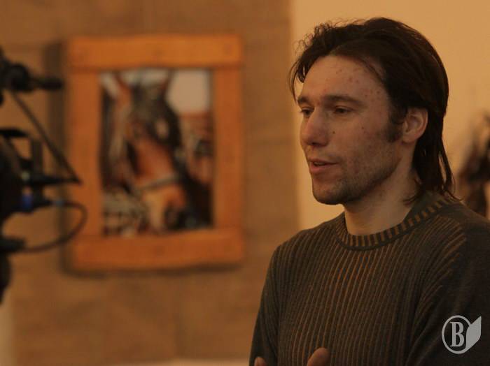 На выставке представлены картине из кожи, выработанные А.Дидович и картины и творения из дерева Дмитрия Зуганова.