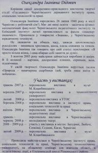 А.Дидович родилась в Чернигове, получила два высших образования. Творить стала в октябре 2005г. С тех пор занимается оформлением разных изделий из кожи.