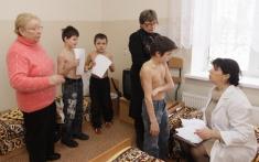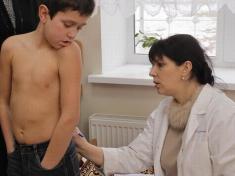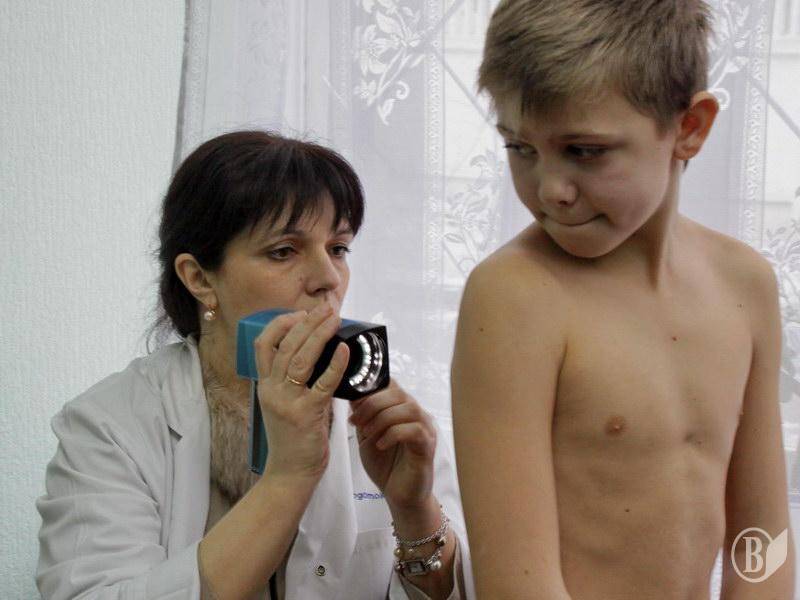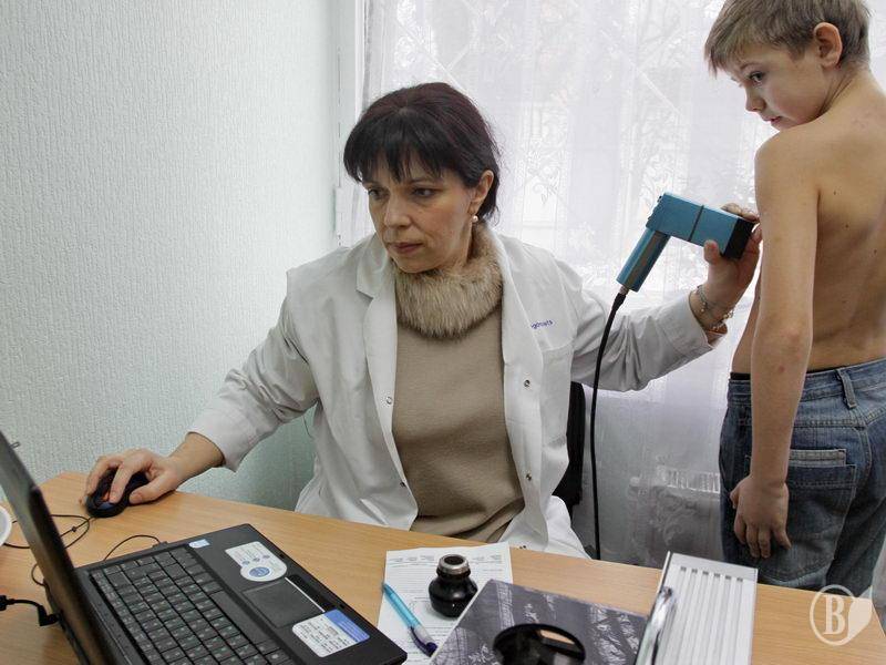 Ольга Богомолец проводит осмотр детей в Чернигове