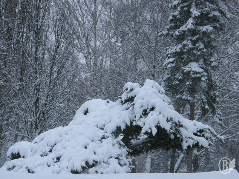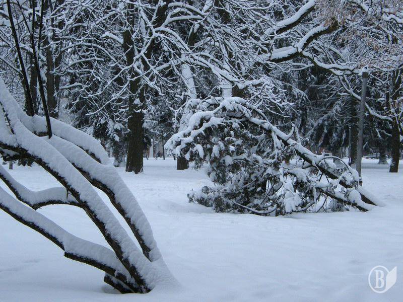 Останній снігопад у прямому сенсі пригнув до землі чимало дерев у чернігівських парках. Часом вони набувають дивовижних форм.
