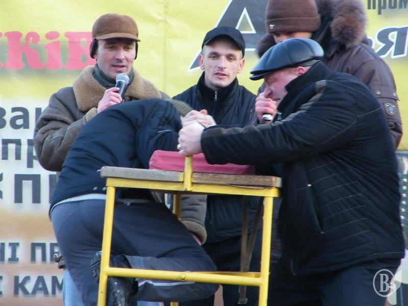 Но пик цинизма ожидал мою трезвую голову позже и немного ниже – на импровизированной сцене при "поощрении" мужчин, которые приняли участие в соревнованиях по армреслингу.