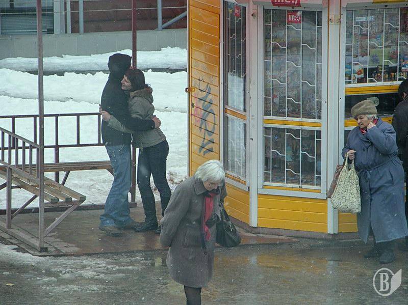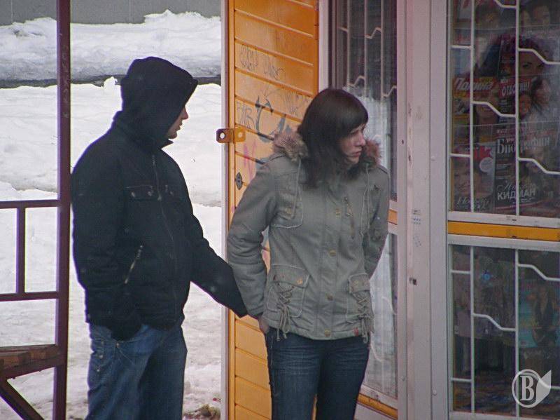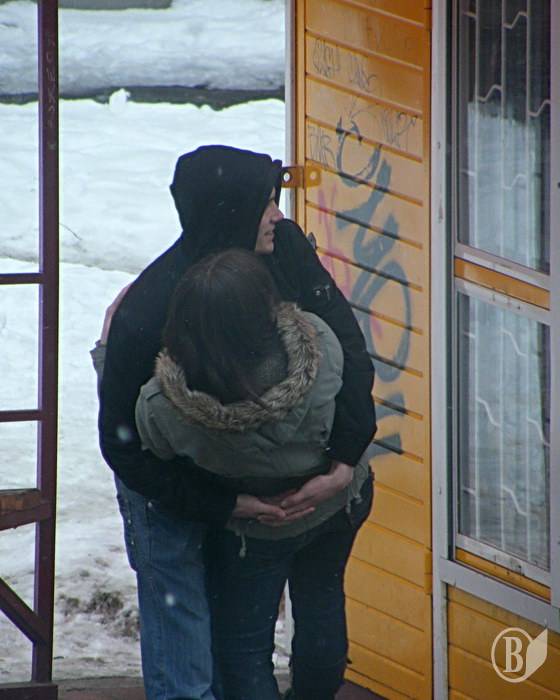 Цікава парочка. З одного боку виглядають на автобус, наче поспішають. З іншого боку – їм явно не до поспіху.
