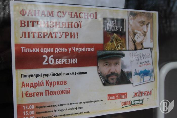 Только за семь часов пребывания в нашем городе писатели накануне Дня Смеха повеселили студентов и преподавателей Черниговского педагогического университета, читателей центрального книжного магазина и наконец журналистов, посетителей в пабе «Вареникс».