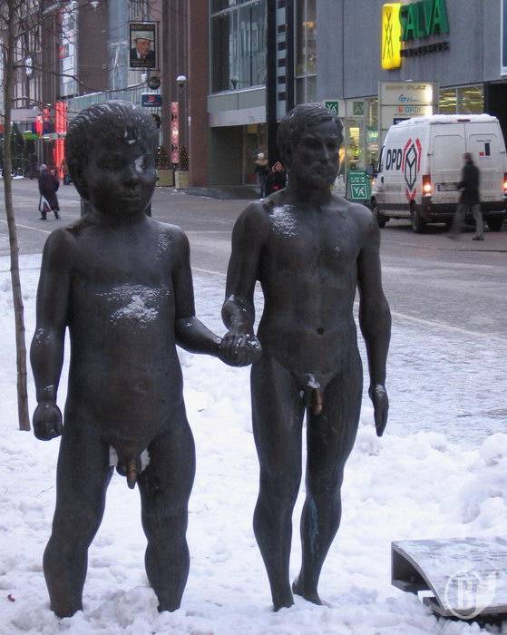У центрі туристи натрапляють на двох оголених бронзових чоловіків. Це місцевому скульптору заманулося увіковічити себе і свого малого сина на день захисту дітей. Перед продуктовим базаром на постаменті височить свиня, на якій показана схема як розбирати тушу. А ще скрізь стоять інформаційні покажчики, де і що знаходиться.