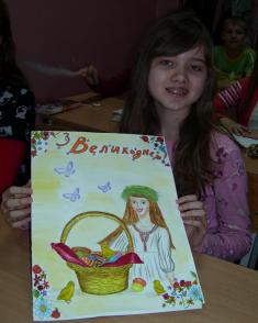 Діти приготували по 2 малюнки. Тематика їх – Великдень.