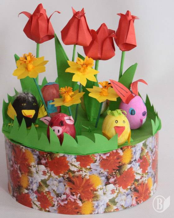 Вони провели конкурс на виготовлення малюнків, іграшок, крашенок, писанок, квочку з яйцем, підставки квітів. З чого б ви думали – з паперу.