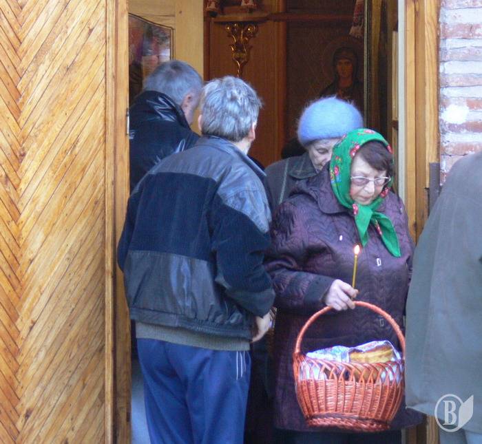 Ще звечора на всенощну люди несуть у красивих корзинах до церкви всілякі страви - сало, хрін, печінку, голубці, все, на що здатна кулінарна фантазія, окрім спиртного. Хто не встиг - приходить зранку.