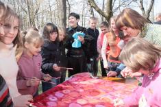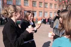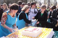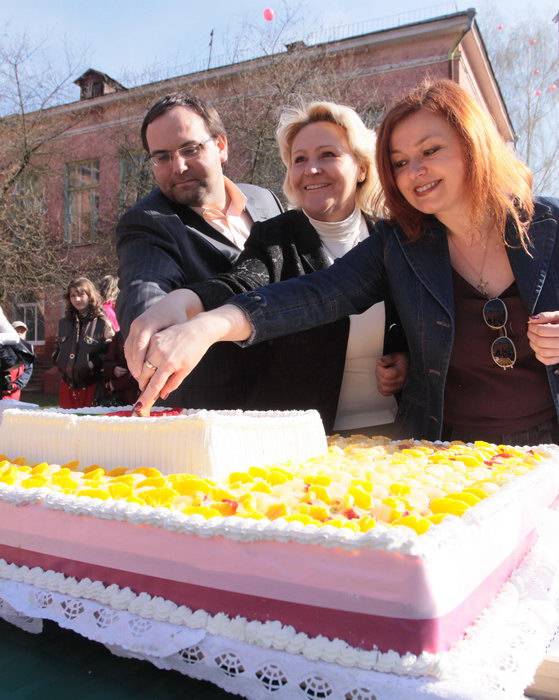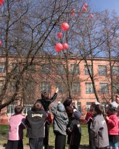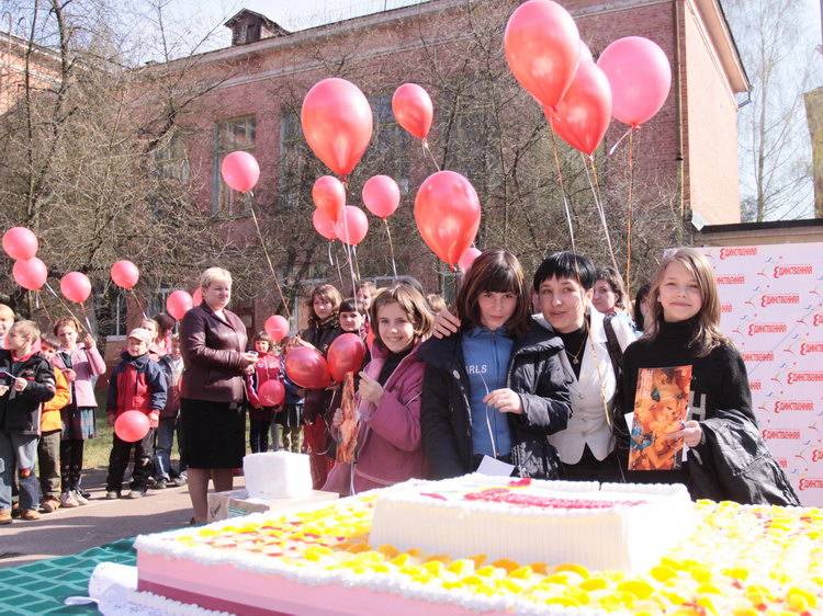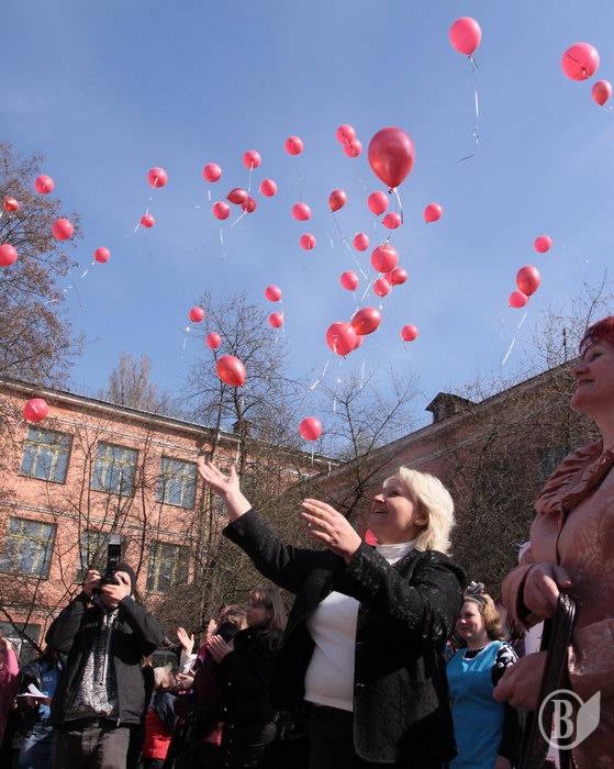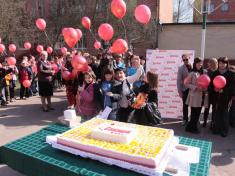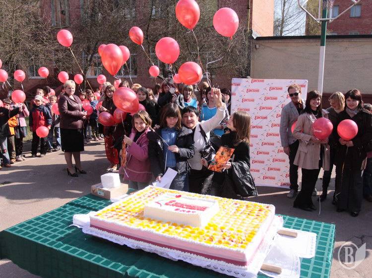 Потім всіх було запрошено на двір, де їх чекав величезний торт. Діти запускали в повітря надувні кульки «мрії» та куштували торт.