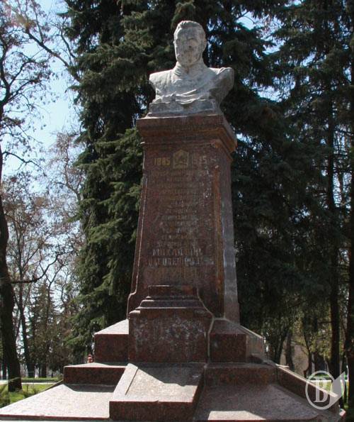 За словами цього навідомішого на всі руки професора, у 1941 році якісь круті, які нам зовсім не чернігівці, свиснули бронзовий бюст на металолом і купили собі пару фірмових стволів. Але в 1948 році далекоглядні предки встановили новий, уже бетонний бюст, що довго конав під бронзу.