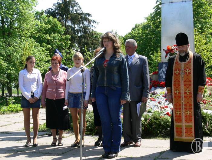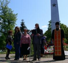 Торжественный митинг начался в 11-ть часов утра около обелиска павшим односельчанам. Открыл его председатель поселкового совета Андрей Прядко. Минутой молчания присутствующие почтили память павших героев, ветеранам вручены ценные подарки.