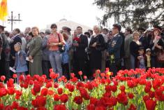 Отмечание Дня Победы 9 мая в Чернигове началось с возложения цветов и венков к могилам погибших воинов в сквере им.Н.Попудренко.