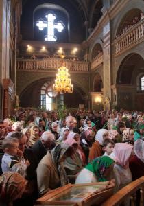 Храм был переполнен прихожанами, а на автопарковке около собора не было свободного места.