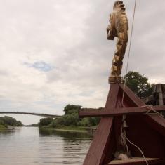 «Экипаж, суши вёсла! Готовься снимать мачту! Правила безопасности: если мачта падает — ложиться на борт!». Когда мачту валят, лодка, беря на себя такой вес, теряет равновесие, поэтому нас несёт течением на мель, к берегу. Раздается команда: «Не качать лодку!» До берега осталось лишь несколько метров, ещё немного и мы могли повредить нос, врезавшись в мель. «Одно весло на воду!» Хорошая реакция одного из гребцов — и мы опять двигаемся по курсу.