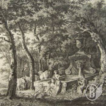 В большинстве случаев к офорту относили углубляющую гравюру на металле, выполненную методом травления (травленный штрих). Большинство эстампов в экспозиции выполнено именно в такой техникой („Пейзаж с фонтаном" Соломона Геснера).