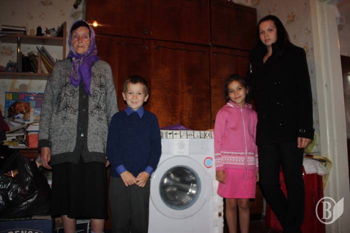 Следующий адрес, по которому заместитель председателя ГНА в области Пётр Жабинец пожаловал с подарками, - улица Механизаторов, 9-А в Чернигове. Вера Алексеевна Полянска воспитывает пятеро внуков-сирот. Все необходимое из одежды, что назвала бабушка, дети получили в подарок. А ещё Вера Алексеевна жаловалась, что с ее больными руками трудно столько стирать. И сколько времен на это тратится! Поэтому подарили ей и стиральную машину-автомат. А Тамара Лапина, глава ветеранской организации налоговиков привезла комплект постельного белья и продукты питания. Вот так налоговики поддержали эту многодетную семью с непростой судьбой.
