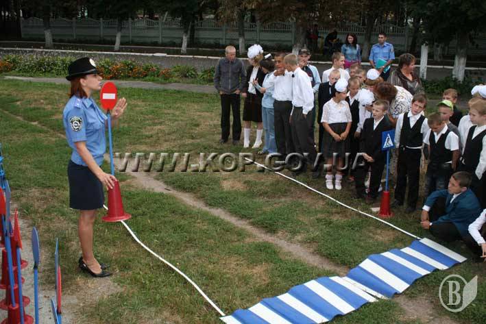 Після закінчення офіційної частини старший інспектор сектору зв'язків з громадськістю ВДАІ області Олена Царюк провела з школярами відкритий урок, на якому всі бажаючі школярі мали змогу на імітованому майданчику пограти в водіїв та пішоходів. Кожен мав змогу показати свої знання правил дорожнього руху та продемонструвати своїм однолітками як необхідно правильно поводитися на проїзній частині.