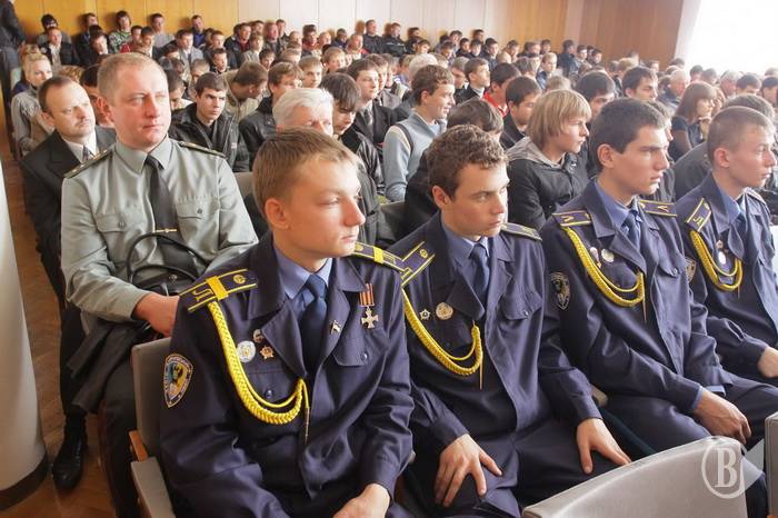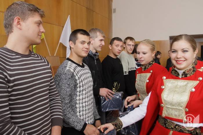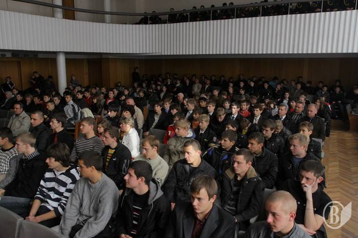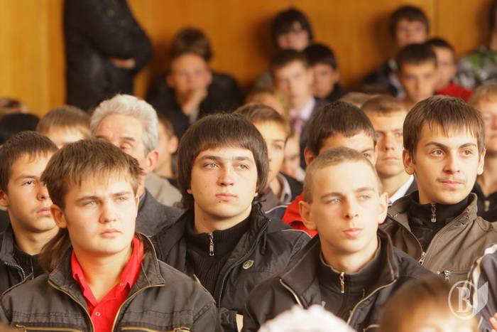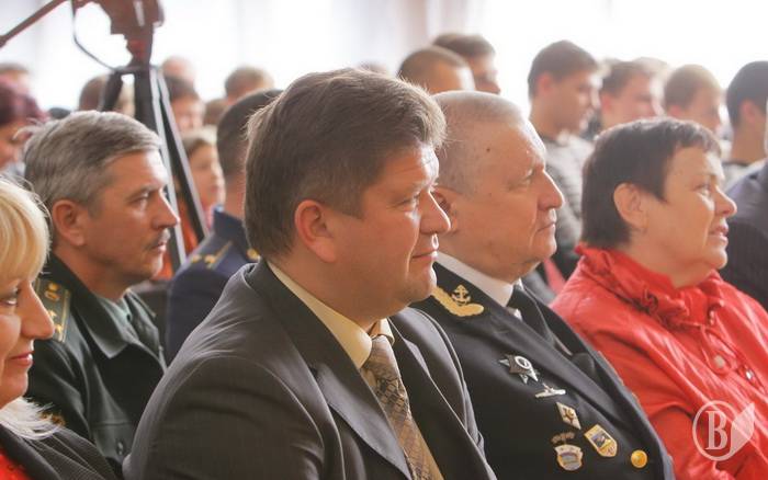 Зал райради був повністю заповнений, журналістам навіть довелося "стояти пішки", поки тривав захід. А про те, що він дійсно був святковим, переконливо свідчили зацікавлені обличчя старшокласників чернігівських шкіл, ліцеїстів військового ліцею та майбутніх призовників.