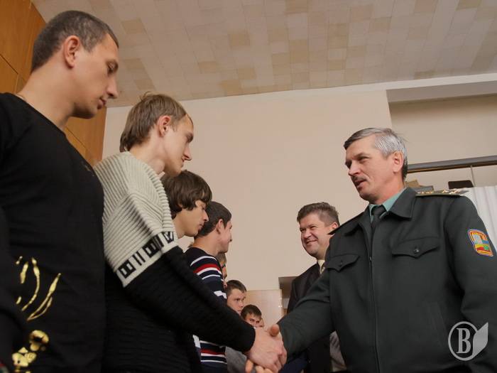 Майбутніх призовників привітали секретар Чернігівської міської ради Олег Шеремет, чернігівський міський військовий комісар полковник Володимир Кравчук, депутат міськради Олександр Шкурат.