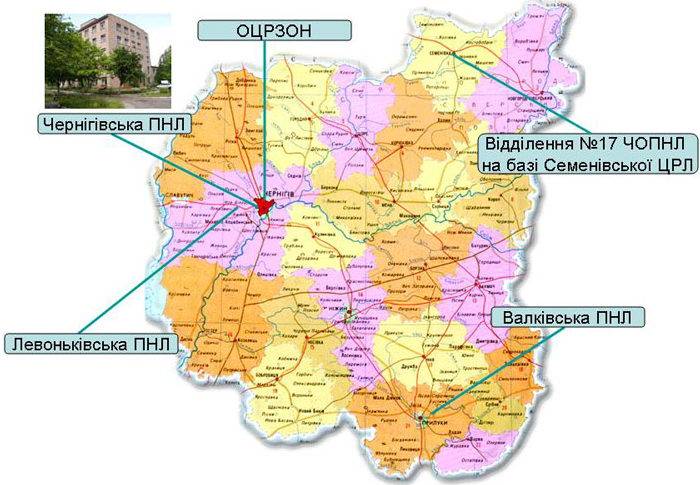 Сьогодні психіатричну допомогу населенню Чернігівщини надають три лікарні: обласна психоневрологічна на 965 ліжок під Черніговом та дві психіатричні – Валківська в Прилуцькому районі та Левоньківська в Чернігівському.