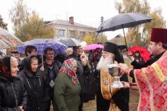 А когда присутствующие на празднике уже собирались убегать от дождя в сельский клуб, где их ждала концертная программа, прибыл епископ Черниговский и Нежинский УПЦ Московского патриархата Амвросий вместе с посланцем из Киева епископом Пантелеймоном. Они освятили памятник и прочитали молитвы.