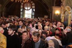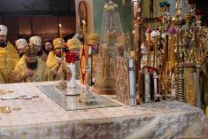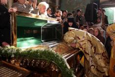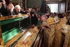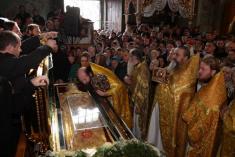 Після божественної літургії та заупокійної літії святі отці провели чин канонізації, а потім відкрили доступ віруючих до нетлінних мощів Святителя Філарета.