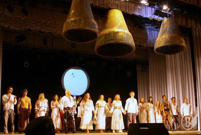 – Конечно. Прочитано и изучено было много. Каждый момент на сцене несет в себе определенную символику. Вот большие колокола над сценой, например, – они всегда извещали людям как о добре и радости, так и о беде и горе. Волчьи шкуры – это признак тайной сверхсилы казаков, упоминание о вурдалак, о характерниках, о сильном государственном строе запорожцев. Для этого прорабатывались научные исследования, исторические труды о Запорожской Сечи: Яворницкого, например, других авторов.