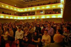 – Да, в Прилуках я не первый раз, но бывал здесь раньше не на сцене. Приезжал сюда в юности, когда был увлечён одной девушкой. Часто приезжал, хорошо помню. Поэтому после своей нынешней прогулки могу утверждать, что город поменялся к лучшему. Слава богу, что есть люди, которые его изменяют. Очень благодарен Юрию Коптеву, также вашим строителям, которые здесь переделывали городские площади, где памятник Шевченко, и Яковченко, и ту, что в центре, и парк. . . Еще вашему меценату и этим же строителям я благодарен за то, что привезли наш театр сюда. Радостно, что Прилуки становятся так сказать культурной столицей этого региона. Могу утверждать, потому что ознакомился также с журналом культурничества «Прилуки. Крепость», познакомился с замечательным человеком, его редактором, Игорем Павлюченко. Этот журнал кардинально отличается от тех журналов, которых сейчас много, и где идет речь преимущественно о каких-то поп-звезд, их диеты и еще о чем-то несущественном, искусственном. А здесь о людях, которые прожили стоимостоятельно, были высококультурными, работали для народа. Вообще, я очень доволен, что мы сюда попали!