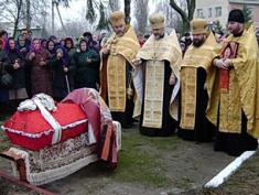... Траурний мітинг відбувся у сквері поблизу Будинку культури, де височіє пам’ятник загиблим односельчанам і покоїться прах чотирьох невідомих воїнів. Саме тут вирішено було перепоховати і Степана Хруща.