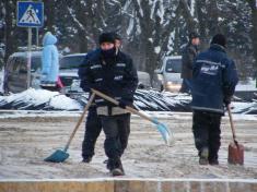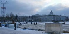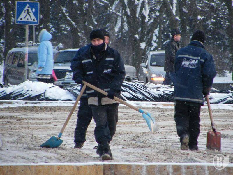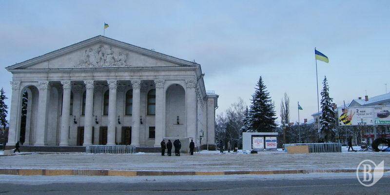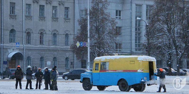 Поруч, поблизу театру ім. Т.Г.Шевченка, частина центральної площі міста площею 8 соток перетворилася на морозну піщану пустелю.