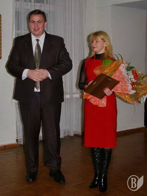 Красуня-ведуча у вечірній сукні розпочинає церемонію. Вручати нагороди надається честь представнику Чернігівської ОДА Іванові Коробці.