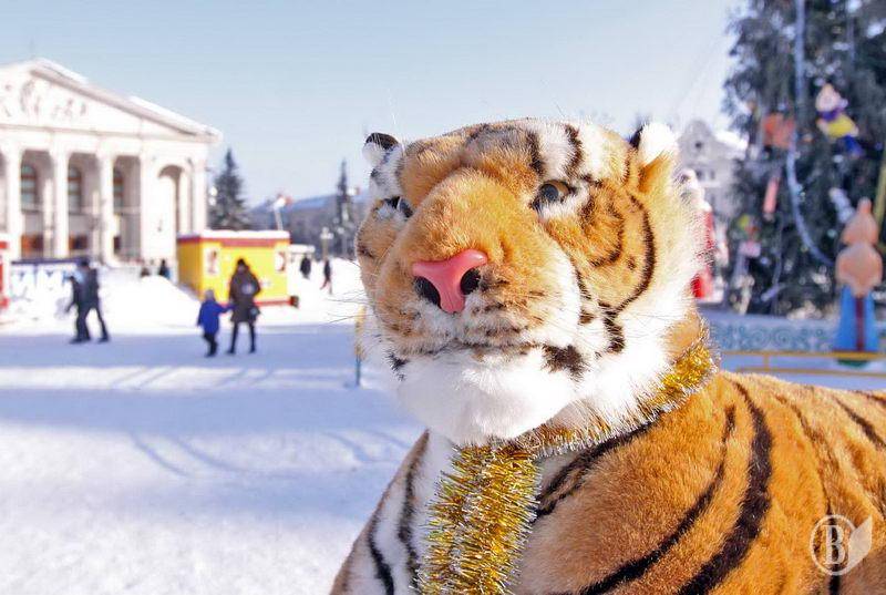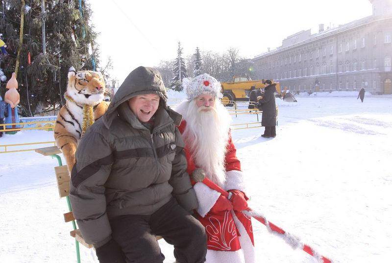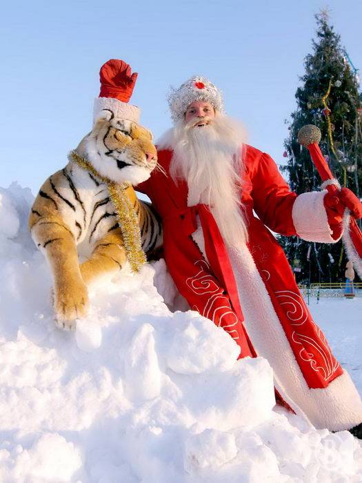 Каникулы! Но детей около елки на Красной Площади что-то не видно. Сидит Дед Мороз с Тигром, скучает, заработка же нет.