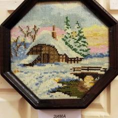 На виставці представлено 80 робіт в техніці вишивки хрестиком. Тематика робіт дуже різноманітна – портрети, пейзажі, рушники, ікони.