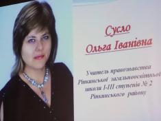 - Сусло Ольга Іванівна – учитель правознавства Ріпкинської школи № 2, вчитель-методист – переможець у номінації “правознавство”;