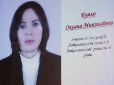 - Буяло Оксана Миколаївна – учитель географії Бобровицької гімназії – переможець у номінації “географія”;