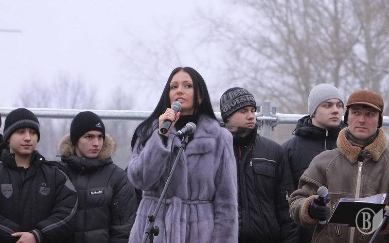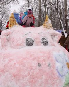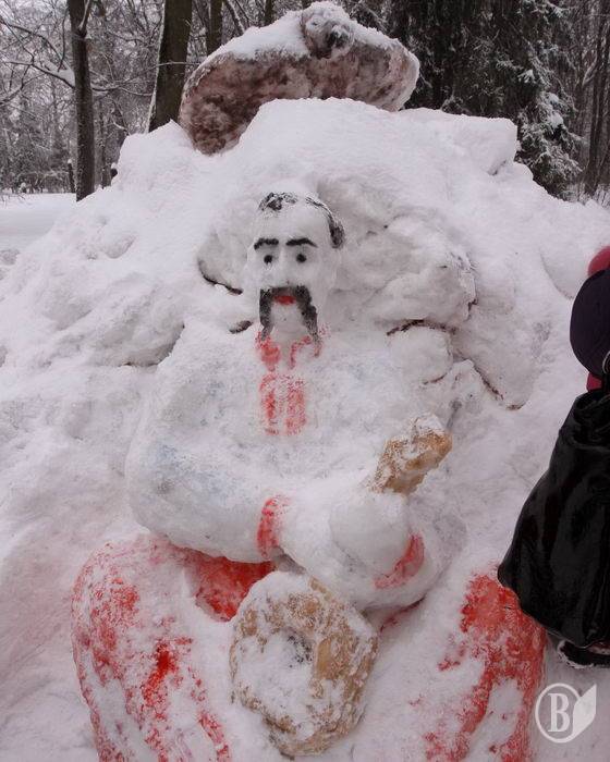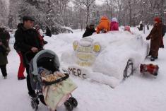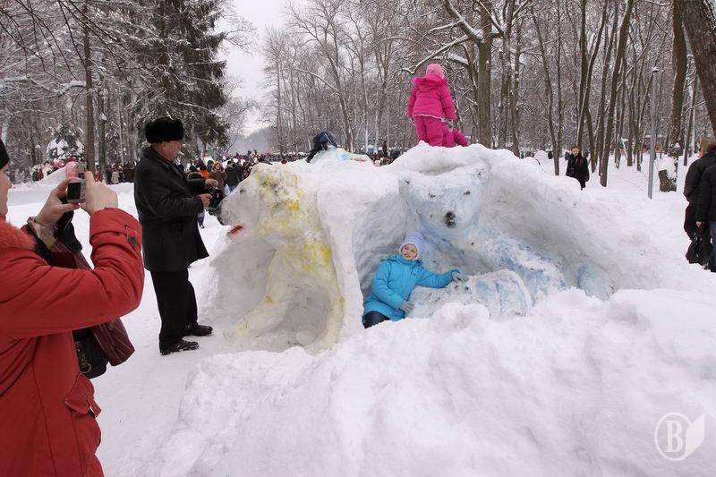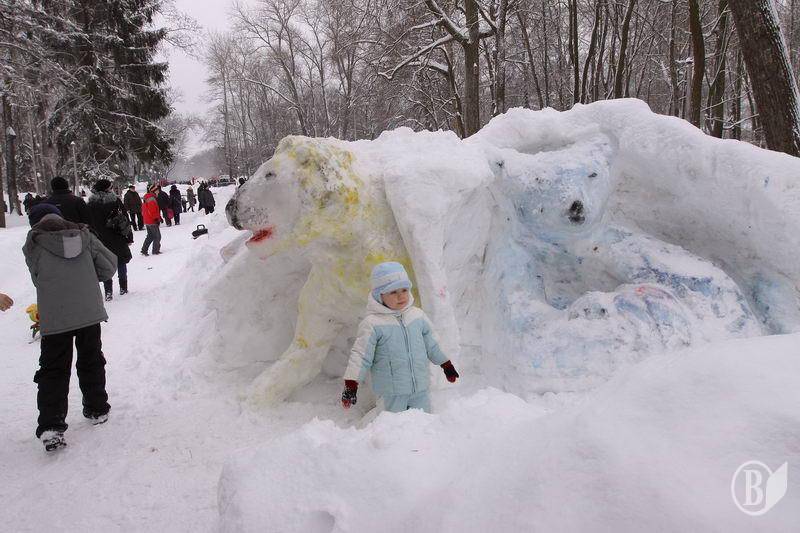 Народ развлекал народный хор"Калина"под руководством Заслуженной артистки Украины Раисы Решетнюк. К празднику коллективы черниговских школьников подготовили конкурсные работы - снежные фигуры. На сырье для них нынешняя зима была щедрой.