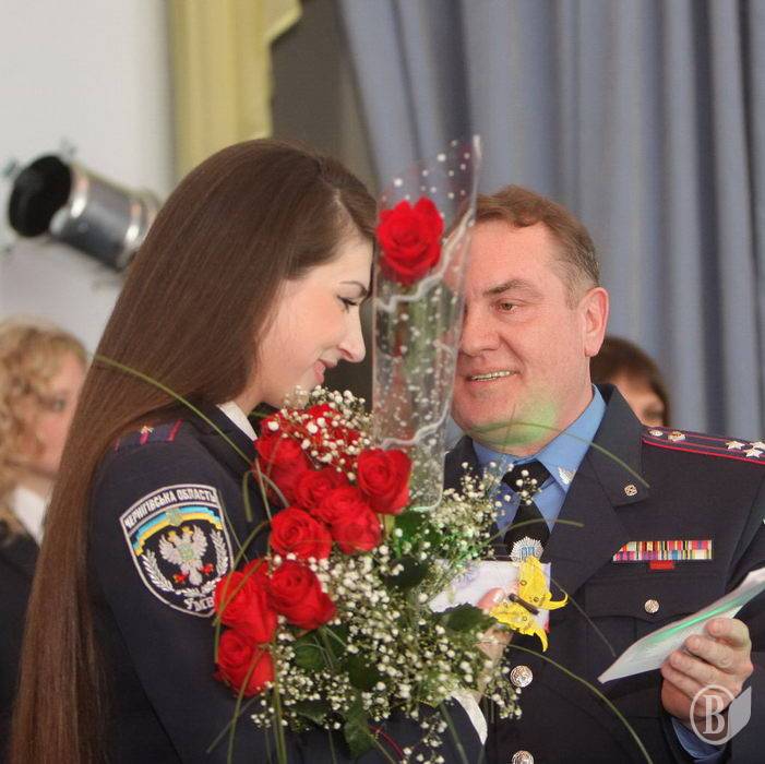 Перед присутніми виступив заступник начальника УМВС полковник міліції Віктор Титоренко. Він привітав всіх жінок зі святом весни, побажав великого людського щастя, натхнення та успіхів в роботі, родинного затишку та благополуччя, а на завершення вручив найкращим співробітницям відзнаки МВС, а декому й новенькі погони.