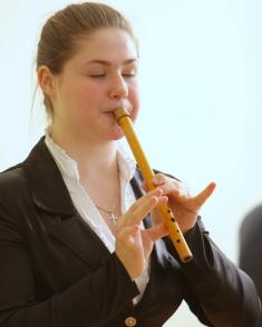 На нынешнем осмотре музыкальных школ она была единственной, кто выступал с игрой на свирели. Вот такая она, Анна Семенец.