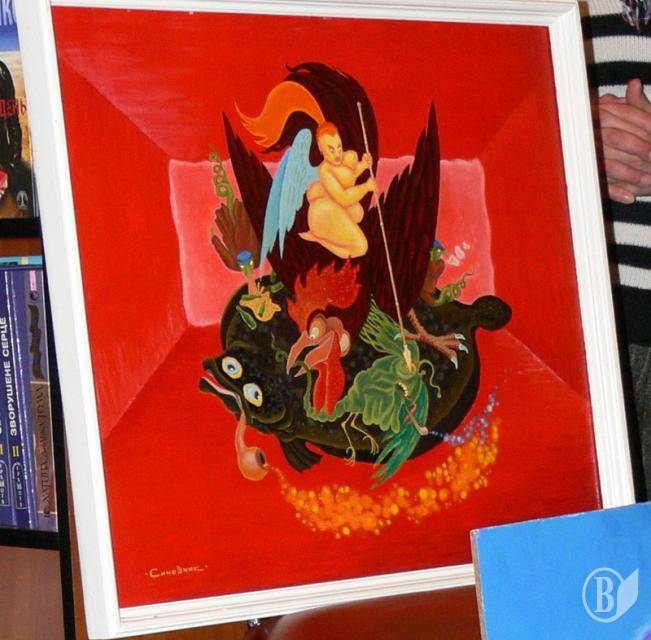Насправді ж причиною заборони, за словами Олега Синельника, стала його картина «Сало у шоколаді», у якій хтось вгадав себе із владної верхівки області.