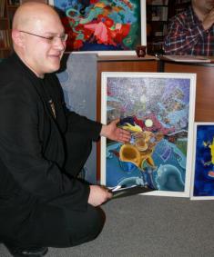 Вибаглива уява художника творить свій світ - веселий, гротескний, абсурдний, яскравий, містичний, дивовижний... Проте, завжди - цікавий та новий.