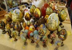 На выставке можно было приобрести весь необходимый инструментарий: писачки, краски, воск, литературу, а также как изысканные традиционные писанки, так и пасхальные яйца из стекла, бисера, расписные иконы, расписные яйца из дерева, а также замечательные изделия из лозы, соломки, дерева.