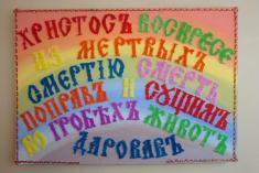К празднику светлого Христового Воскресенья такая выставка открылась в выставочном зале областной организации национального союза художников Украины (Проспект Мира, 34). Здесь представлены разнообразные детские работы на пасхальную тематику – рисунки, аппликации, картины из разных материалов и писанки.