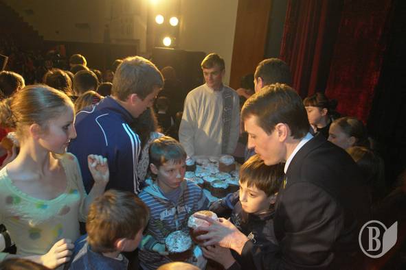 После торжественного концерта каждому зрителю народный избранник и владыка Амвросий раздали подарки – пасхи, а деткам еще и сладости.