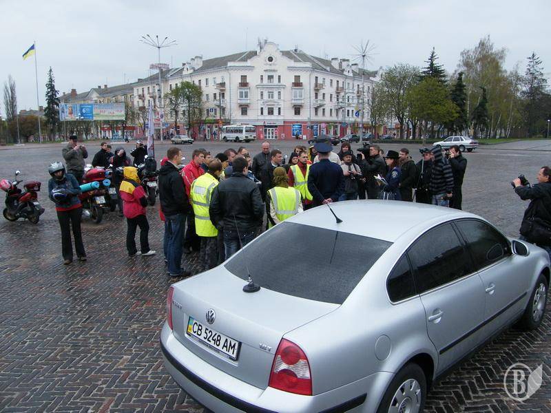 Збори учасників відбулись на Красній площі Чернігова. Оранізоване зібрання такої кількості мототехніки озадачило перехожих. Особисто у автора цих рядків двічі цікавилися, що це відбувається. Дехто навіть припускав, що це протест проти нововведень у законодавстві щодо транспортних засобів з об’ємом двигуна до 50 куб.см.