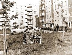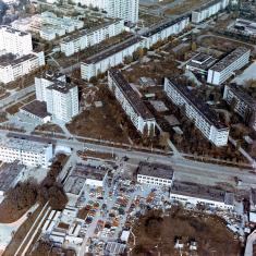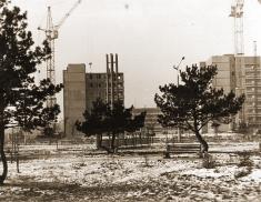 Панорама центральной части города с видом на ЧАЭС, которая строится. Автор - С.Нехаев. Весна 1980 года.