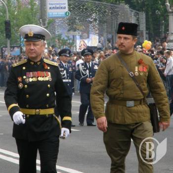 6 парадных расчетов представляли солдат времен Великой Отечественной войны, а именно воинов-пехотинцев, воинов-танкистов, воинов-авиаторов, военных моряков, бойцов партизанских отрядов и женщин-санинструкторов. Дальше шагали знаменосцы с Флагом Вооруженных Сил Украины и флагами видов Вооруженных Сил и 12 парадных расчетов Вооруженных сил Украины и других военных формирований. Для обеспечения парада было привлечено 17 военных оркестров, а это больше 600 военных музыкантов.