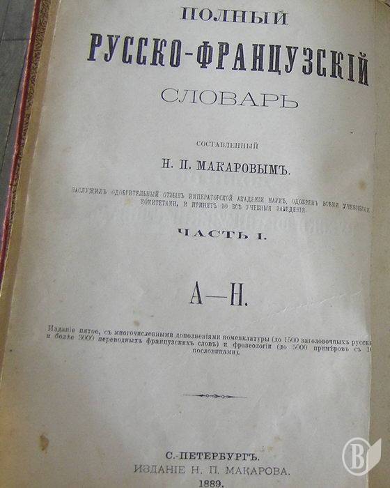 Одна з книг – «Марина Мнишекъ» О.Булгакової - надрукована староросійськію мовою і датована 1917 роком, друга - «Полный русско-французский словарь» 1889 року випуску. Книга «Марина Мнишекъ» має бібліотечний штамп.