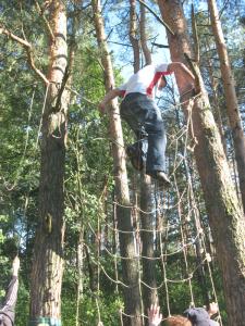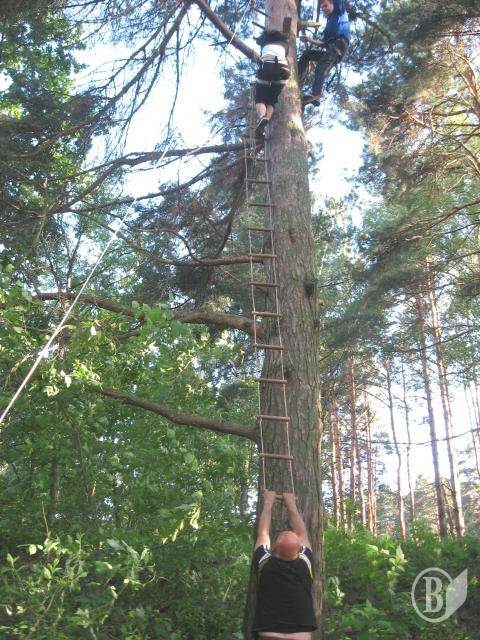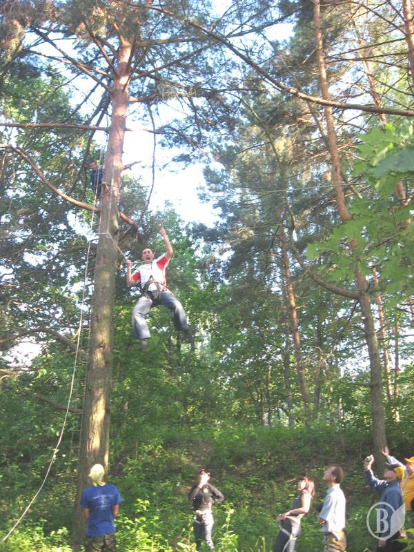 Після висадки на берег гості туристичного форуму ознайомилися з іще однією розвагою, яку туристам Чернігівщини пропонує рятувальна служба "SOS". З ентузіазмом вони виконували непрості вправи на натягнутих між деревами мотузках і навіть стрибали з височенної сосни.